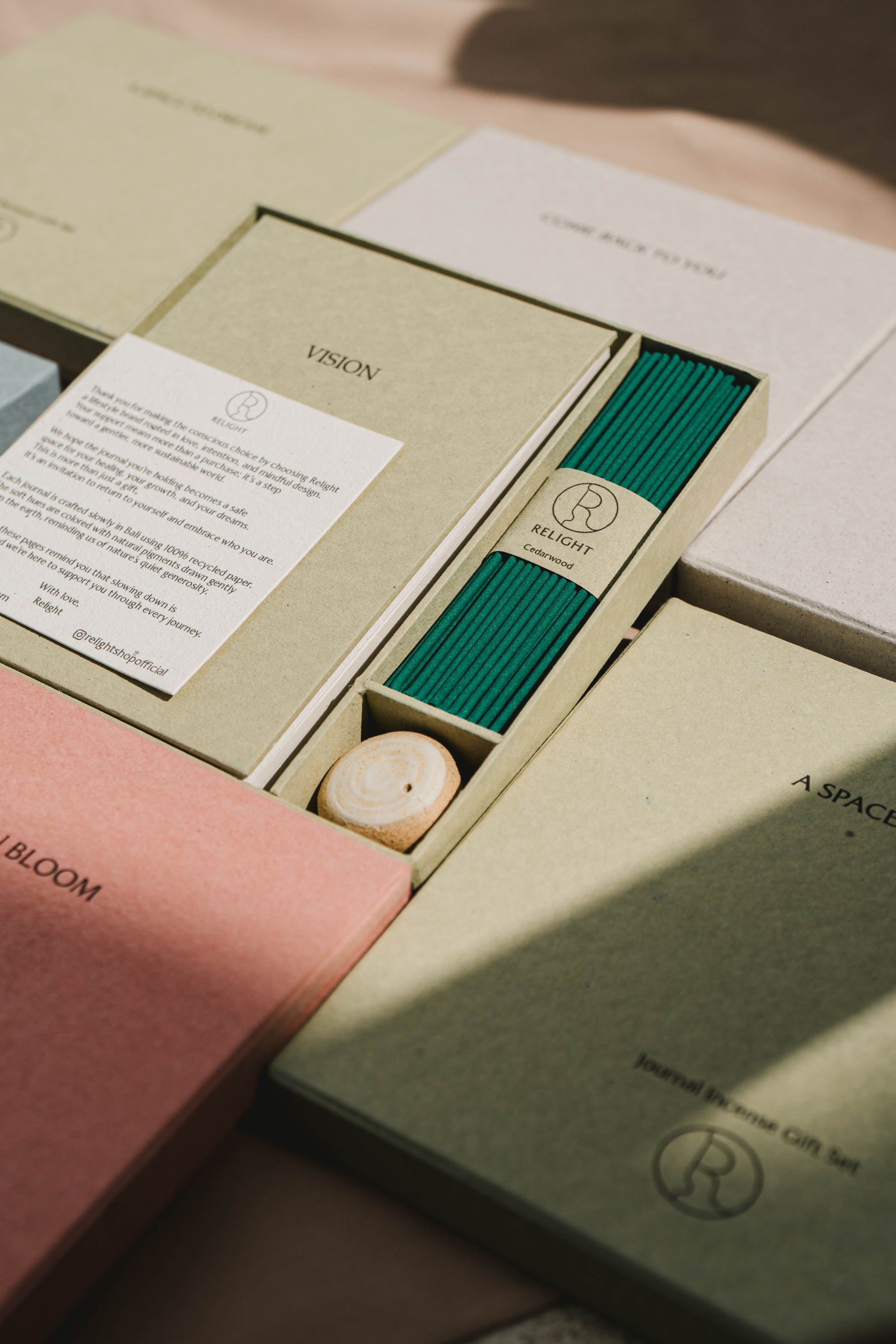 The Vision Bundle pairs a handcrafted journal with our calming Cedarwood incense, inviting you to slow down, breathe deeply, and connect with your inner world.